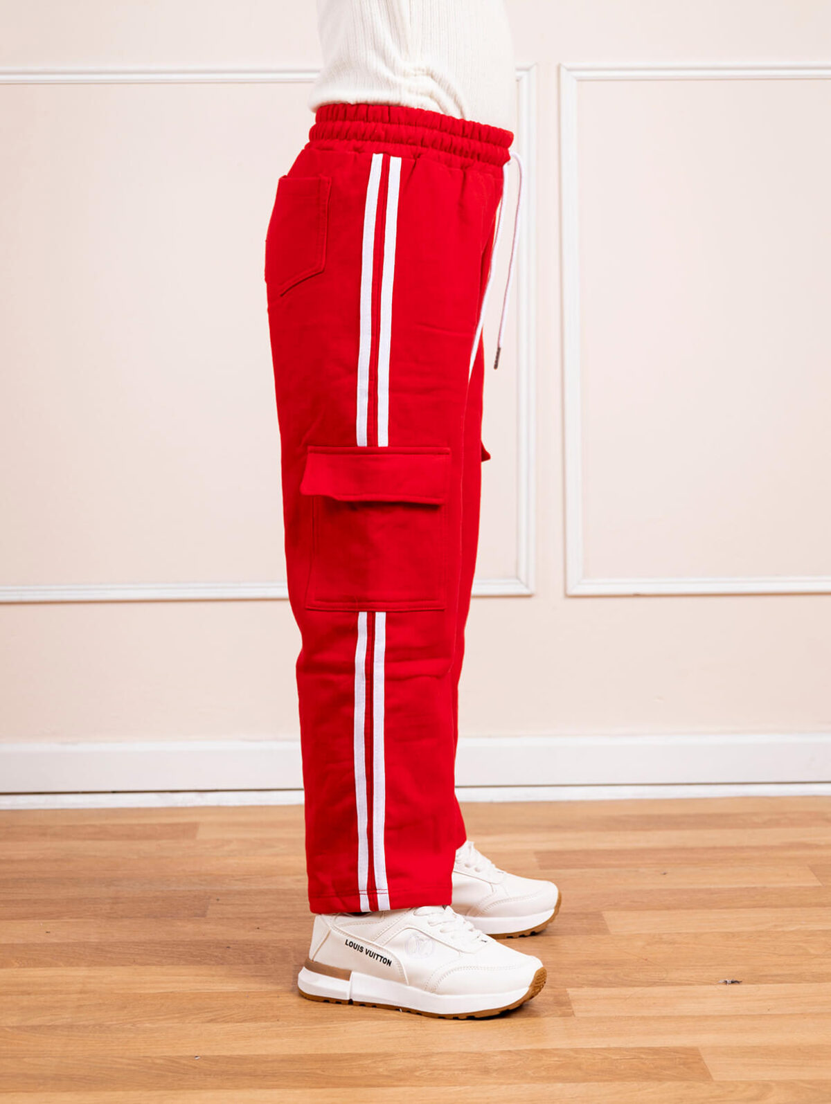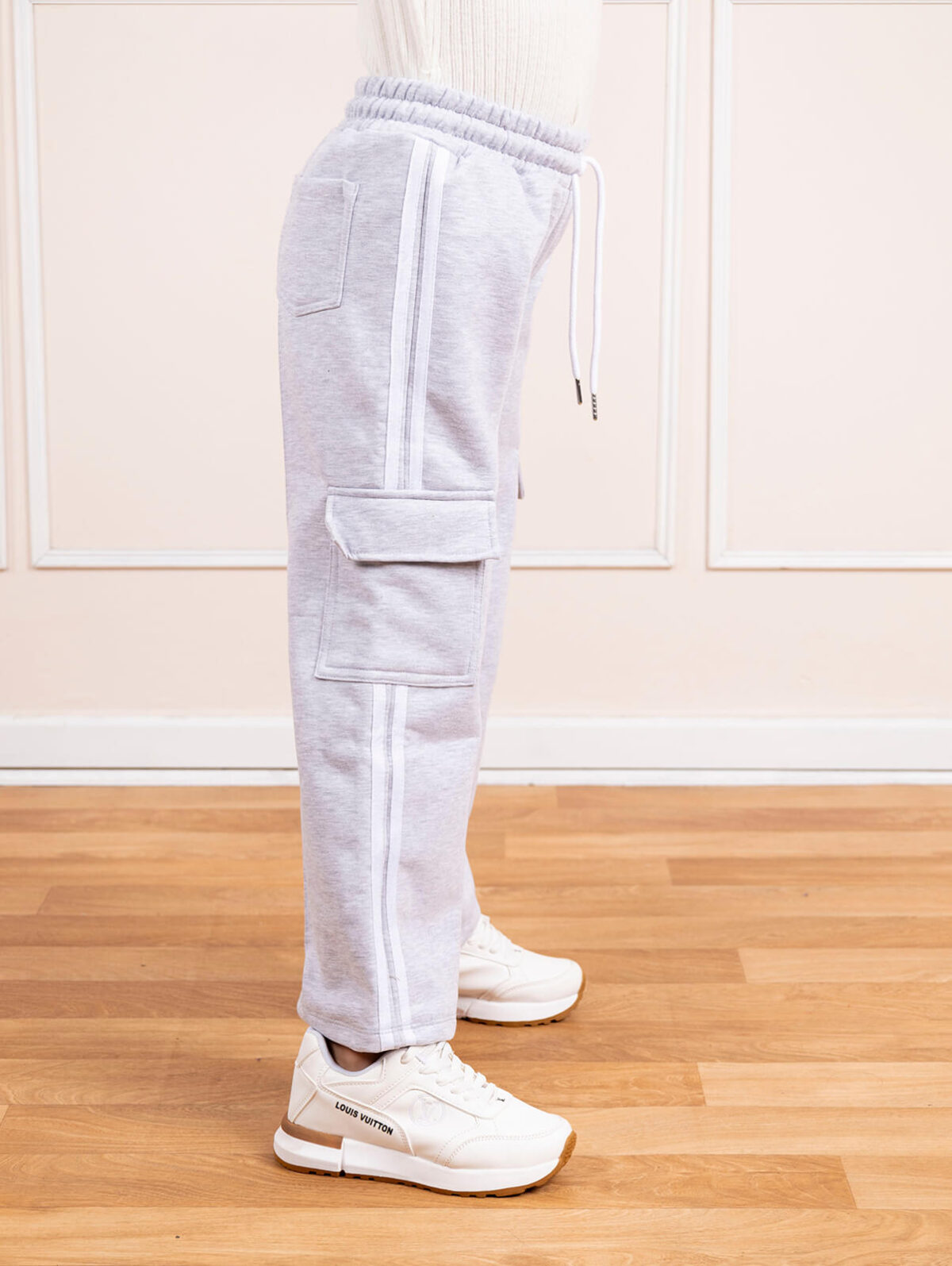 Pantalón en franela reactiva con cintas a los costados. Cómodo, cálido y con un toque moderno.